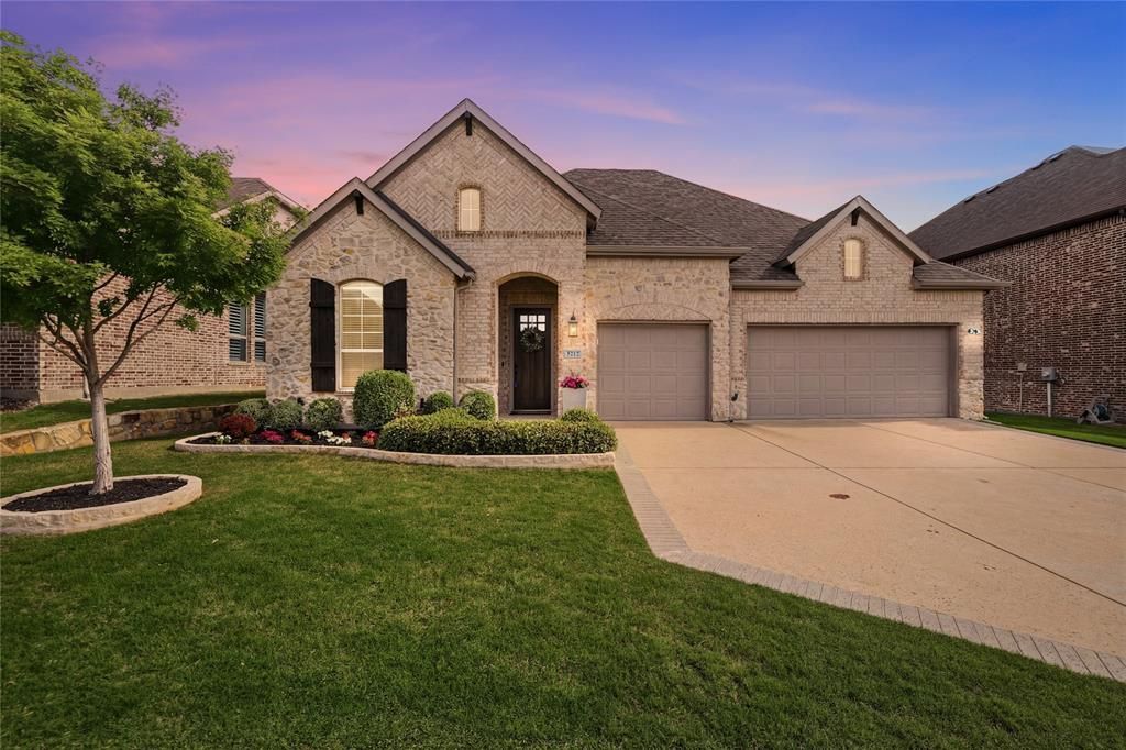 Experience the perfect blend of luxury and tranquility in this immaculate single-story retreat, perfectly positioned on a premier greenbelt lot within a quiet cul-de-sac. From the moment you arrive, gorgeous curb appeal and lush landscaping set the stage for a home designed for both elegant entertaining and comfortable daily living. Stepping inside, the open-concept floor plan is bathed in natural light from abundant windows, highlighting extensive wood flooring, crown molding, updated light fixtures, and sophisticated 6-panel interior doors. The inviting living area features a stunning floor-to-ceiling stone fireplace with gas logs and flat-screen wiring, creating a warm focal point for cozy evenings. Culinary enthusiasts will fall in love with the modern kitchen, boasting crisp white cabinetry with under-cabinet lighting, granite countertops, a classic subway tile backsplash, and stainless steel appliances. Retreat to the secluded primary suite, where a bay window sitting area offers a peaceful spot to unwind while enjoying backyard views. The spa-like bath features a dual-sink granite vanity, a deep soaking tub, a separate shower, and a massive walk-in closet with seasonal storage. With a split-bedroom layout for maximum privacy, the fourth bedroom is ideally situated to serve as a quiet home office. Outdoor living is elevated by a spacious covered patio with a ceiling fan, providing an unobstructed open view of the serene greenbelt. Complete with a 3-car garage and access to a community pool, playground, and park, this home offers an unparalleled lifestyle within the highly sought-after Argyle ISD. Enjoy the peace of a secluded neighborhood with easy access to 35W and 377. Take a first-person look at this gorgeous home! Click the Virtual Tour link to see the 3D Tour!