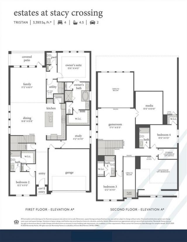 NORMANDY HOMES TRISTAN floor plan. Stunning Tristan floor plan on a desirable East-facing lot! This beautifully designed 4-bedroom, 4.5-bath home offers the perfect blend of style and functionality. Soaring ceilings in the entry and family room create a bright, open feel ideal for everyday living and entertaining. The main level features a private study and a guest suite with ensuite bath. Each bedroom includes a walk-in closet for ample storage. The gourmet kitchen opens seamlessly to the living and dining areas, making it the heart of the home. The secluded owner’s suite offers a spa-like bath with a freestanding tub and dual vanities. Upstairs, enjoy a spacious game room, media room, and two additional bedrooms. Thoughtfully designed with comfort and elegance in mind—this home truly has it all!