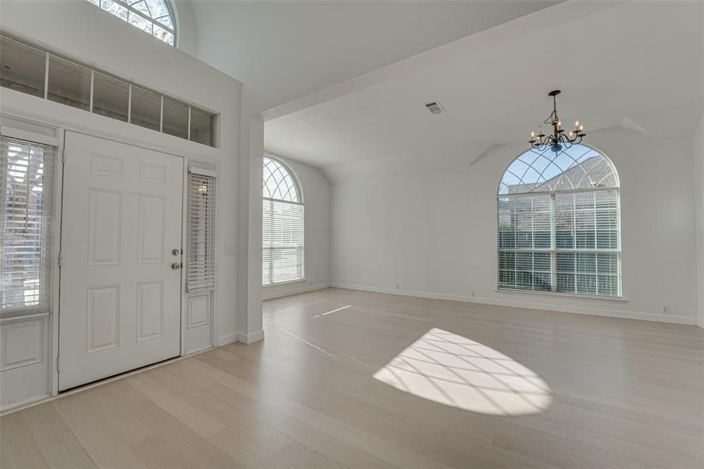 Welcome to this stunning and spacious 2,842 sf home filled with natural light and soaring 20-ft ceilings. Beautiful entry opens to formal living and dining areas, perfect for entertaining. The expansive family room features a custom wood-burning fireplace and flows into the modern kitchen with gleaming unique natural Brazilian quartzite counters, quartz sink, and ample cabinet and counter space complete with a breakfast bar and secondary dining space. The oversized primary suite on the first floor is truly impressive, offering a spacious sitting area perfect for a home office or nursery. The spa-like primary bath features a separate shower, jetted garden tub for relaxing after a long day, and an extra-long vanity. Upstairs you’ll find three generously sized bedrooms and a third living area or game room. Upgrades include white oak flooring downstairs, sustainable bamboo flooring upstairs, Italian tile in the utility room, and non-toxic paints and materials throughout to complete this exceptional home.Step outside to a charming backyard with a brick paver patio, perfect for summer BBQ's, scenic views of the bike trail and lake, community pool just around the corner, multiple nearby parks and greenbelt access, plus close proximity to shopping and Rockwall Square. This home offers comfort, style, and an unbeatable location.