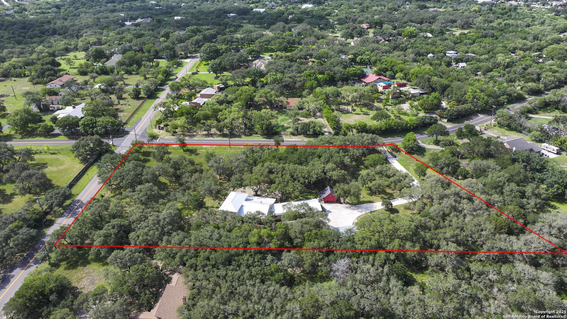 *Unique 3 Plus Acre Estate in the Heart of San Antonio allowing Horses and chickens* Welcome to your dream home in the heart of San Antonio! This 4,250+ square foot home with a connected in-law suite sits on a beautiful, wooded 3+ acre corner lot that includes both the 5803 and 5805 Hollyhock Road addresses! In a central location with easy access to Texas Medical Center, UTSA, USAA, and other key employment centers, the expansive grounds offer a unique blend of city living and rustic tranquility. The main house has a newly renovated kitchen, 4 bedrooms (2 downstairs and 2 upstairs), 2.5 bathrooms, and beautiful exposed brick framing the living and dining rooms. The attached in-law suite has a full living room with a fireplace, bedroom/closet, full bathroom and kitchenette with a separate entrance. Connecting the in-law suite is a large flex/multi purpose room ready to be made into your dream entertainment room or whatever your heart desires! The house is also modernized with multiple rain barrels/water harvesters throughout the property. Additionally, there is a 3 space covered carport. The property also has an adorable "barn" storage unit. This estate is ready to move into and has ample space for additional development. Whether youre planning multi-generational living, looking for investment potential (the property is zoned for multiple units), or want a huge outdoor area for entertaining, this property has it all! Come see your dream estate in the heart of San Antonio!