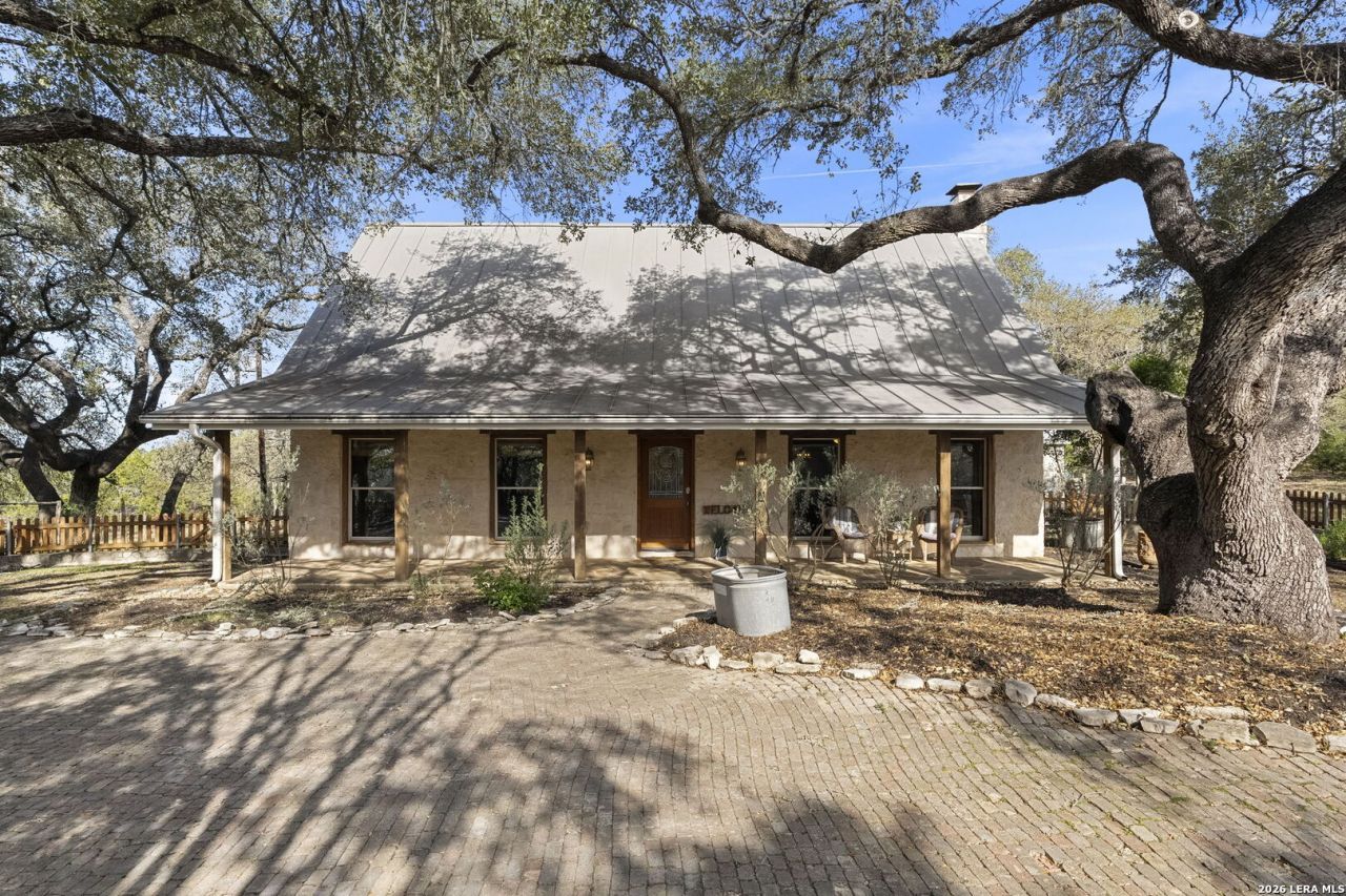 Incredibly located, 23-acre Ranchette, with development and commercial potential, in one of the Hill Countrys most dynamic growth corridors, this is a rare opportunity to acquire a property with both immediate enjoyment and significant future upside. The current plan includes 3 commercial lots with strong FM 311 frontage (approx. 1 acre each) and 15 one-acre residential lots behind a proposed gated entrance. Property features mature oak trees throughout and borders Smithson Valley Middle School. Complete engineering plans available, including grading, utilities, and erosion control. New owner could utilize as a multiple family homestead, move forward with the current plan, or explore alternative development opportunities. Currently operating as a successful Airbnb with excellent reviews, the 2859 sqft main home blends Hill Country charm with modern updates, rock accents, hand-scraped engineered hardwoods, oversized living area, and spacious kitchen with large island, built-in appliances, farm sink, and walk-in pantry. Primary suite includes custom shower, soaking tub, and large walk-in closet. Two oversized bedrooms upstairs share a full bath. The backyard features an in-ground pool/spa by Keith Zars Pools, and covered patio with fireplace and outdoor kitchen. The shop / barn includes two covered horse stalls, turnouts, and 946 sqft apartment upstairs.