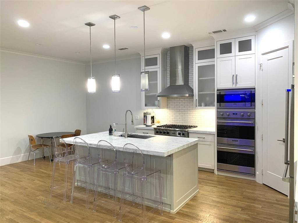 Step into elevated living in this stunning single-family attached home by renowned builder J. Gregory Homes, perfectly positioned near the premier shopping and dining of NorthPark and Preston Center. A beautifully landscaped courtyard welcomes you into a light-filled, transitional masterpiece featuring an open-concept layout and a dramatic two-story entry. Designed for both everyday comfort and effortless entertaining, the spacious living room showcases a fireplace and wet bar, flowing seamlessly into the dining area with views of the covered outdoor patio—complete with its own fireplace and a private, fenced yard. The chef’s kitchen is a true showstopper, outfitted with white marble surfaces, a generous island with breakfast bar, gas cooktop, double ovens, stainless steel refrigerator, walk-in pantry, and a charming breakfast nook. The main level also offers a private library, a guest suite with ensuite bath, a powder bath, and a two-car garage—thoughtfully designed for convenience and flexibility. Upstairs, escape to the luxurious primary suite featuring a spa-inspired bath with dual vanities, an expansive double shower, and abundant closet space. Two additional bedrooms with ensuite baths, a game room with wet bar, a dedicated media room, and a full-size laundry room complete the upper level.