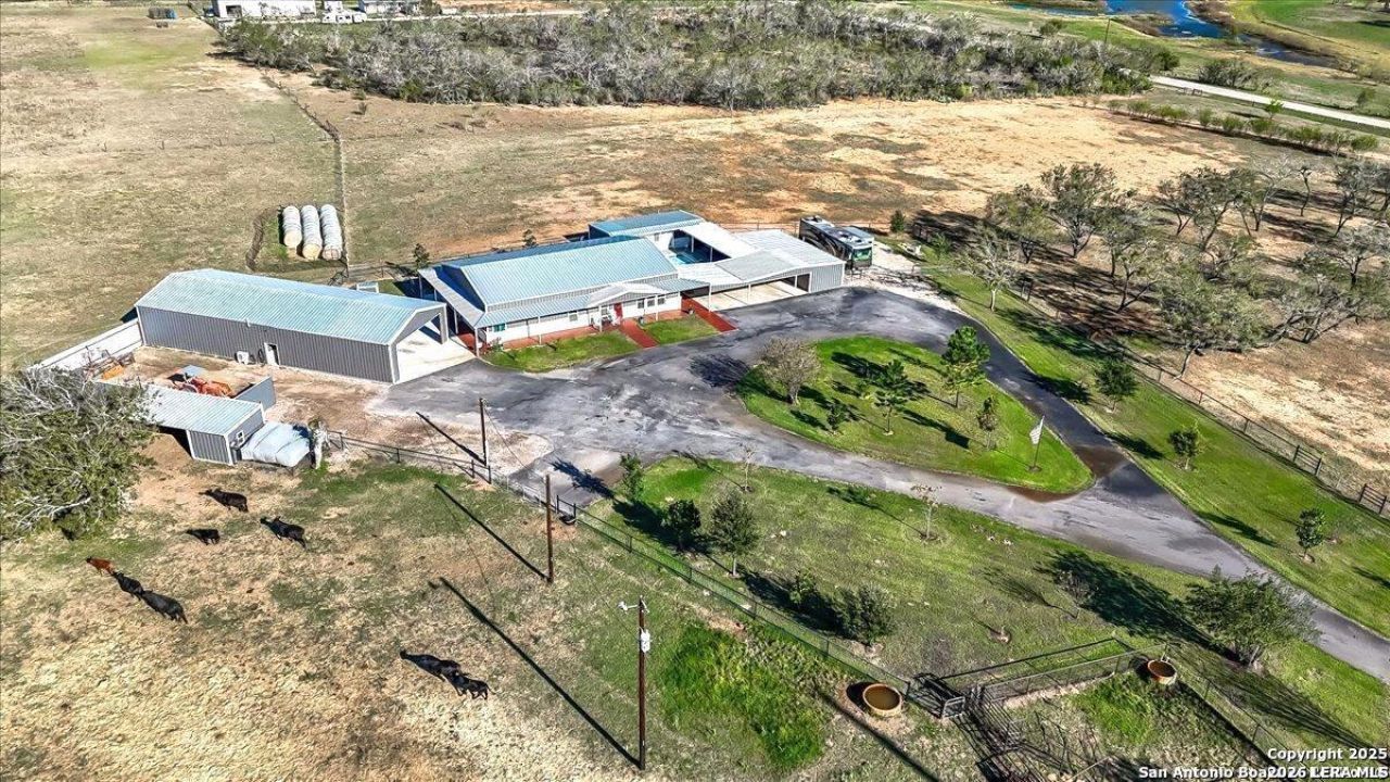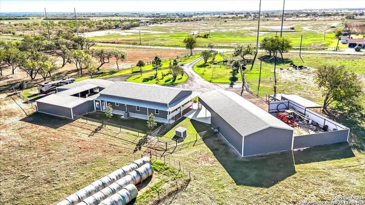 **Very Interesting Set-Up**...Mini Ranch w/Lots of Extras on 11.47 Fenced & Cross Fenced Acres (Approx 830 wide x 600 deep) w/Paved Road Frontage on 2-Sides..Approx 4100sf of Total Livable Heated & Cooled Space "Amongst" A 2600sf Custom Blt Barndo w/Approx 2000 of Wrap Around Metal Porchs ..(Very Open Floorplan,3-Bd,2-Ba,Gourmet Style Island Kit w/Upgraded Appliances/Cabinets,Raised Deco Ceilings & Central Vac Unit) *PLUS* Approx 720 Attached 2nd Barndo/In-law Suite w/1-Bd,1-Ba,Kit & Living area *PLUS* Approx 800sf Gm Room w/Rustic Finish Out,1/2 Bath,Ice Maker,Pool Table & Other Gaming Items..(NOTE ALL 3 HAVE ENERGY EFFICIENT SPRAY FOAM INSULATION PLUS) Approx 38x20 Metal Carport/Covered area PLUS Approx 1700sf Interior Courtyard w/Ingrd Pool & BBQ area that overlooks all 3 living/game rooms PLUS Approx 40x30 Spray Foam Insulated & Air-Conditioned Metal Bldg Workshop with 1/2 Ba,12x10 Roll-up door & 40x30 Covered Parking area *PLUS* Approx 12x12 Chicken Coop w/20x12 Caged Area & Approx 300 Deep Water Well w/Variable Speed Pump AND Rural Water Meter from SS Water Co & Fiber Optic Internet from CVEC & Sprinkler Sys that Irrigates Approx 1.5 Acres & 20x20 Covered Area w/Working Animal Pens & Concrete Water Troughs & 20 Decorative Entry Gate w/Auto Opener & Asphalt Paved Circle Dr & RV Parking Area w/Hook-ups...CALL 4 Detailed Packet of Info/Appraisal...Country Living w/No City Taxes,Low 1.54% Tax & Low Ag-Exemption Tax Rate.. in Wilson County...A MUST SEE !!!!!