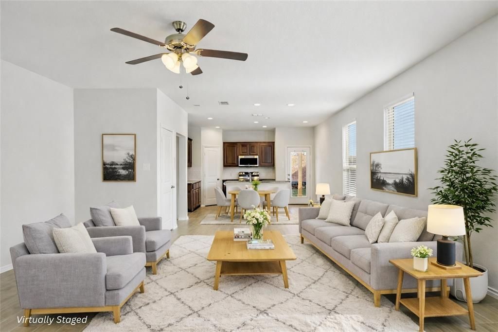 Welcome to this beautifully maintained home in the desirable Aubrey Creek Estates community! This inviting residence offers a spacious, open-concept floor plan designed for both everyday living and effortless entertaining. The light-filled living area flows seamlessly into the kitchen, creating the perfect gathering space for family and friends.The kitchen features recently updated appliances, providing a fresh, modern feel along with functionality any home chef will appreciate. Throughout the home, newly replaced carpet adds comfort and a clean, move-in ready appeal.The private primary suite offers a relaxing retreat, complete with ample space and an ensuite bath. Secondary bedrooms are well-sized and versatile, ideal for guests, a home office, or growing households.Step outside to the backyard with a covered patio - perfect for outdoor entertaining, play, or simply unwinding at the end of the day. Located in a welcoming neighborhood with convenient access to local schools, shopping, and dining, this home combines comfort, value, and location.Even better, this property qualifies for 0% down USDA financing, making homeownership more accessible than ever. Don’t miss this opportunity to own a beautifully updated home in one of Aubrey’s most sought-after communities!