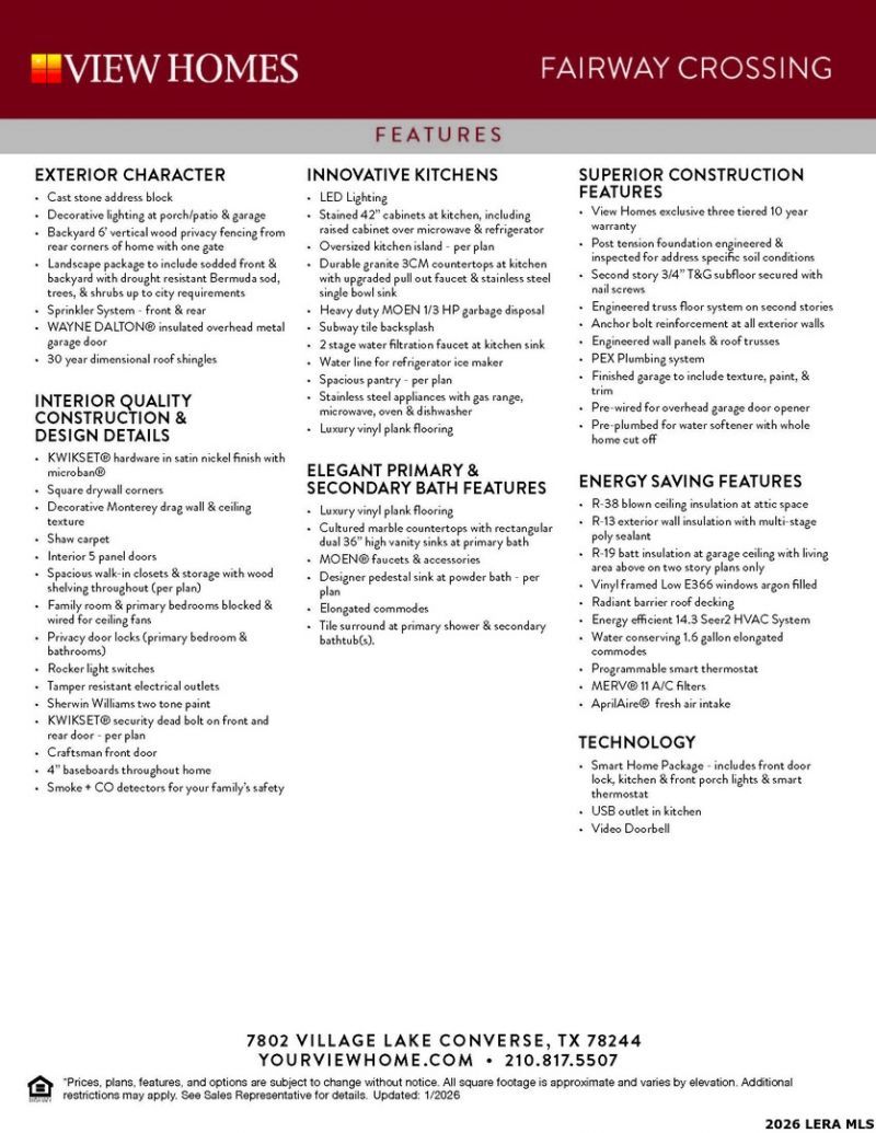 This single family home located at 7820 Rio Ridges, San Antonio, TX 78244 is currently listed for sale with an asking price of $366,990. This property was built in 2026 and has 3 bedrooms and 2 full and 1 partial baths with 2120 sq. ft. Rio Ridges is located in the Fairway Crossing subdivision within the Judson school district. Search Fairway Crossing real estate on karenschaeper.kellyrealtors.com today.