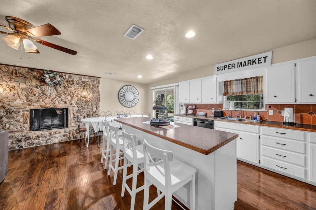 Peaceful country living meets modern convenience on this beautifully cleared 2-acre property, currently operating as a successful Airbnb. The main home welcomes you with an impressive stone fireplace as the centerpiece of the open-concept kitchen and living area, creating a warm and inviting atmosphere.The property also features a newly renovated mother-in-law home, adding additional square footage and versatility—perfect for guests, extended family, or continued rental income.Outside, you’ll find a huge shop with RV storage, plus a 20' x 40' shed that could easily be converted into horse stalls. Two barns, ample storage closets, and a large, clean storm cellar—ideal as a wine cellar thanks to its naturally regulated temperature—add even more functionality. With 8 stalls and 3 turn outs, bring your horses! We've got room for them too! A wraparound gravel driveway provides easy access to two covered areas in the back, making this property as practical as it is charming. With a combined 2,292 sq. ft. of total living space between both homes, this one is truly a must-see!You can't beat this location! It is just minutes away from the 377 Arena!