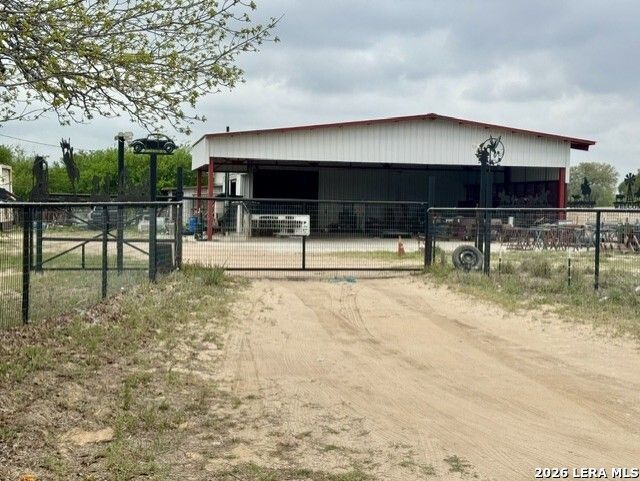 Country living at its finest! Great location and beautiful mature trees. There is a huge cement pond with solar lighting and a bridge that crosses over the pond for fishing or swimming located on the property. There are several metal sheds, barns and pens located on the property for storage or raising farm animals. No restrictions or city taxes. Home is in metal barn 1/1 with a kitchen/living room combined. There is a 3/2 slab already in place to build your dream home. Property has piped entrance with electric gate, piped fence front and side of property. One side has privacy fence. Metal shop, 66x120 located at front of property as you enter. Another 1b/1b located on side of shop. All this located on 5.54acres.