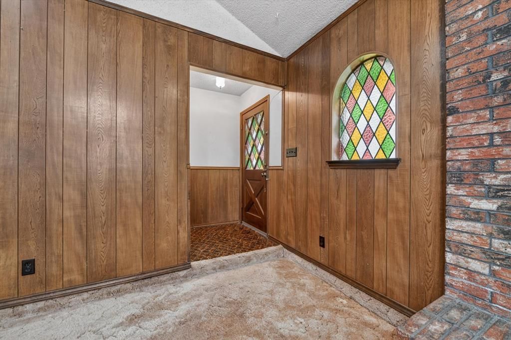 Welcome to this nearly half-acre property tucked away on a quiet cul-de-sac in North Richland Hills. This home offers a great opportunity to personalize and add your own touches. The spacious living room features vaulted ceilings and a cozy wood-burning fireplace, creating a warm and inviting atmosphere. Just off the living area, you’ll find a charming private courtyard—perfect for morning coffee, container gardening, or a quiet outdoor retreat. The kitchen is functional and full of character, offering double ovens, cabinetry to the ceiling, and a quaint breakfast nook with built-in bench seating. A generously sized walk-in laundry room adds convenience. The primary suite includes an en suite bath with vintage finishes, providing a great canvas for future updates. Three additional bedrooms offer flexibility, with one easily serving as a home office complete with a built-in desk. The secondary bathroom features dual sinks for added functionality. Situated on a large lot with no HOA, this property offers space, charm, and plenty of potential. Conveniently located near major highways, DFW Airport, and close to both Dallas and Fort Worth.