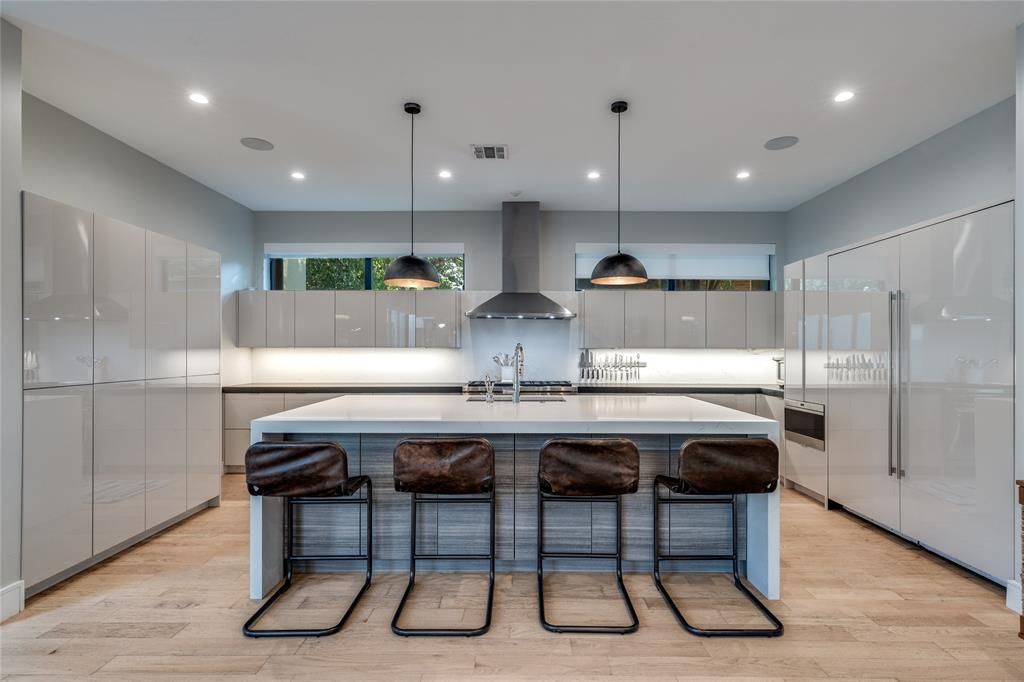 Modern Luxury Estate in Forest HillsSet on nearly 0.5 acre in East Dallas, this modern estate offers a rare opportunity for luxury contemporary living just 4 blocks from White Rock Lake & the Dallas Arboretum, only 11 minutes to Downtown. Designed with clean architectural lines & timeless finishes, this newer construction home blends sophistication & comfort. The versatile floor plan lives like a sprawling single story with the primary suite, 2 living areas, dining & guest room—all on the main level with seamless access to the stunning infinity-edge spa-like pool & outdoor gas fireplace—perfect for star-gazing nights. Upstairs offers 3 additional bedrooms & a large game room. The chef’s kitchen features Sub-Zero & Bosch appliances, oversized island & full-size side-by-side refrigerator & freezer. Additional highlights include limestone exterior, Quaker windows, boutique-style primary closet & a 3-car garage with epoxy floors & ceiling height for a vehicle lift. Energy-efficient systems, designer lighting & hardwood floors complete this modern Forest Hills masterpiece.